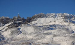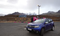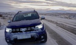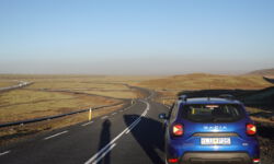 Angekommen an der Verleihstation bekommen wir einen Dacia Duster. Dieses Modell hat Werner und mich doch neulich noch prima durch Georgien gefahren. Dieser hier ist noch ziemlich neu, die Kontrollleuchten funktionieren, aber er macht seltsame Geräusche beim Fahren durch Kurven. Kein Wunder, er hat Spikes in den Reifen, das sind kleine Stahlstifte, die hier im Winter für ordentlich Grip auf den Straßen sorgen. Bei uns sind sie verboten, weil sie die Fahrbahn schnell kaputt machen.