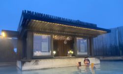 Dort blubbert und dampft es wieder aus allen möglichen Löchern und Hügeln. Ansonsten ist es draußen aber sehr kalt. Der Dacia ist mittlerweile ganz schön vereist, so dass das vordere Nummernschild kaum mehr zu erkennen ist. Schnell fahren wir weiter in unsere Unterkunft. Die ist schön stylisch innen und hat auf der Terrasse wieder einen sehr schönen Hot Pot für mich stehen, in den sofort reinspringe.