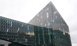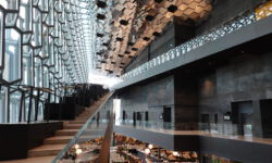 Am letzten Tag unserer Islandreise laufen wir, nach einem kurzen Stop im Hard Rock Café, ein letztes Mal zum Kongressgebäude. Dieses Mal gehen wir rein und sehen uns das Gebäude von innen an. Das Design innen finden wir ebenfalls klasse. Da gerade keine Veranstaltung stattfindet, dürfen wir aber nicht alle Bereiche betreten. Klaus sieht sich jeden Stein und jedes Fenster einzeln an, ich laufe derweil zum Mützenladen und kaufe mir passende Handschuhe.