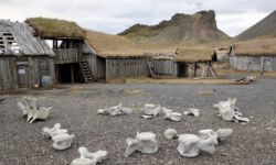 Das Wikingerdorf mit dem Wikingerschiff sieht so aus, als wäre es schon sehr lange sehr verlassen. Beeindruckend sind die Walknochen, die im Dorf herumliegen. Anschließend wärmen wir uns noch etwas im Wikingercafé auf und sehen uns die Islandpullover an, bevor es weiter nach Egilstadir geht. Die Küste ist sehr schroff und es beginnt zu regnen, so dass wir uns über die schöne Aussicht aus dem warmen Auto heraus freuen.