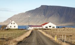 Es geht weiter bis nach Akureyri, der mit 20.000 Einwohnern viertgrößten Stadt Islands. Sie liegt am Fuße des Fjords Eyjafjördur und wir können die Stadt und die dahinterliegenden Berge schon von der anderen Fjordseite aus sehen. Wir halten nur kurz an der berühmten Kirche, denn wir wollen heute noch bis Hvammstangi fahren.