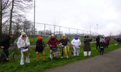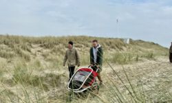 Bereits am näxten Tag gibt es wieder den De Zestig Van Texel-Lauf, der alle zwei Jahre stattfindet. Dabei umrunden die Läufer die Insel einmal in 60 Kilometern oder zweimal in 120 Kilometern. Es gibt auch die Möglichkeit mit einer Staffel die 60 Kilometer zu teilen. Wir haben mit unterschiedlichen Staffel-Teams schon einige Male teilgenommen, dann aber auch einige Jahre ausgesetzt. In diesem Jahr haben die Kinder ein Team für die Staffel angemeldet. Insgesamt starten drei „Kinder“ und zwei „Erwachsene“ aus unserer Gruppe. Das Wetter meint es heute nicht gut mit den Läufern, der Start beginnt mit Hagel und Sturm, und die Strecke muss etwas geändert werden, da es Abschnitte gibt, die unter Wasser stehen. Den ganzen Tag ist es nass und sehr windig. Ich fahre mit dem Fahrrad zu den Wechselstationen und feuere unser Team an. Nach sechs Stunden und zwanzig Minuten holt sich unser Team im Ziel die verdienten Medaillen.