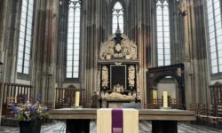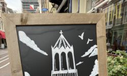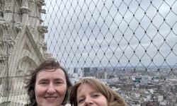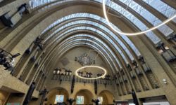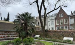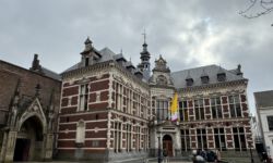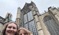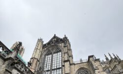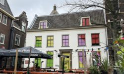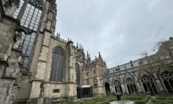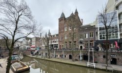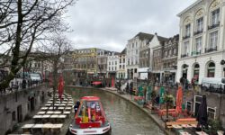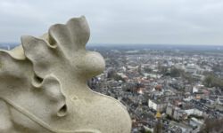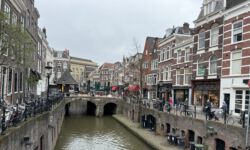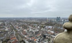 In diesem Jahr fahre ich bereits etwas eher los, um mich mit Géonne aus und in Utrecht zu treffen. Sie ist meine Caminofreundin, die ich am ersten Tag meiner Wanderung auf dem Jakobsweg getroffen habe und mit der ich seit dem Kontakt halte. Wir treffen uns vor dem Dom, weil ich Tickets für einen Turmaufstieg besorgt habe. Wir freuen uns riesig uns wiederzusehen und haben uns viel zu erzählen. Nach 465 Stufen stehen wir oben auf dem Turm und haben eine schöne Rundumsicht über Utrecht. Anschließend laufen wir durch die Stadt, die einen bunten Wechsel aus alten Backsteingebäuden, typischen kleinen Hollandhäusern und modernen Gebäuden bietet. Durch die Stadt fließen zwei Kanäle und es gibt jede Menge Verweilmöglichkeiten in Cafés, Kneipen und Restaurants. Das Wetter ist heute nicht so schön, aber zumindest regnet es nicht und wir können uns die Stadt ansehen. Géonne zeigt mir auch die Stadtbibliothek in einem alten Gebäude. Von außen sieht sie eher wie ein Kino aus mit einer Leuchtschrift wie in Las Vegas. Drinnen befindet sich eine große Halle aus hohen Bögen und großen Deckenlampen.