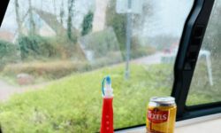 Da ich das Häuschen auf Texel erst am nächsten Tag beziehen kann, verbringe ich die erste Nacht auf dem Parkplatz des Ferienparks. Es ist ziemlich kalt, aber ich bin gewappnet und habe genug Decken und warme Klamotten an Bord. Wie schön, wenn man sein eigenes Haus immer dabei hat.