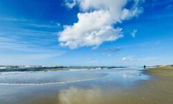 Das einzige, was extrem stört, ist die Tatsache, dass die gesamte Strecke über Asphalt geht. Meine Fußsohlen schmerzen irgendwann doch sehr. Das kenne ich bereits vom Jakobsweg, aber hier treffe ich niemanden mit dem ich mich unterhalten und den Schmerz vergessen kann. Endlich angekommen in Oudeschild mache ich eine längere Pause, setze mich in die Fischbude und gönne mir ein Garnelenbrötchen und eine eiskalte Cola. Die Schuhe ziehe ich aus und warte bis der Schmerz nach einer halben Stunde so weit nachgelassen hat, dass ich weitergehen kann. Nun sind es „nur noch“ neun Kilometer zurück zum Häuschen. Nach neun Stunden, inklusive einer Stunde mit mehreren kurzen und einer längeren Pause, habe ich es nach 42 Kilometern tatsächlich zu Fuß um die Insel geschafft. Jetzt ziehe ich schnell die Schuhe und die Socken aus und lege die Füße hoch. Die bekommen nun eine schöne lange Pause an der frischen Luft und ich kriege ein kaltes Bierchen zur Belohnung!