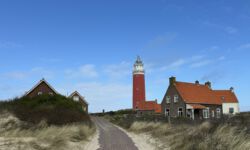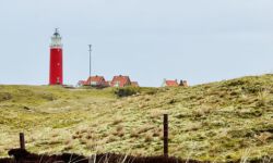 Am näxten Morgen mache ich mich auf einen 42 Kilometer-Marsch rund um die Insel. Da es eine Trainingswanderung für den Mammutmarsch im April sein soll, will ich die Strecke alleine in meinem Tempo gehen. Klaus begleitet mich auf den ersten sieben Kilometern und geht dann am Strand entlang nach Hause. Ich marschiere weiter in Richtung Norden bis zum Leuchtturm und von da aus rüber zur Ostseite der Insel. Bis Oudeschild zieht sich die Strecke ganz schön lang am Meer entlang. Ich habe Gegenwind und laufe ganz einsam über den Asphalt. Lange Zeit sehe ich noch nicht einmal ein Schaf auf der Wiese. Das Wetter heute ist für andere Touristen scheinbar ungeeignet für eine Outdoor-Aktivität. Für mich ist es ganz passend, weil es nicht so warm und zumeist trocken ist.