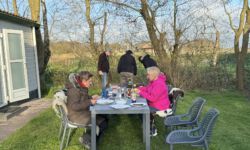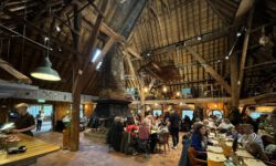 Am näxten Tag ist für einige bereits der Ausräumtag gekommen, da sie am darauf folgenden Morgen zurück nach Hause fahren müssen. Klaus und ich bleiben mit zwei weiteren Familien noch zwei Tage länger und lassen den Texelurlaub mit gemeinsamen Fahrradtouren, Grillen und einem Besuch im Katharinenhof ausklingen. Der Katharinenhof ist ein alter Bauernhof von 1684, der in Familienbesitz ist und zu einem Pfannkuchenrestaurant umgebaut wurde. Vor Coronazeiten konnte man um einen großen offenen Kamin in der Mitte des Restaurants herumsitzen und bei einem Getränk aufs Feuer sehen oder selbst einen Holzscheit nachlegen. Aufgrund von Umweltauflagen wurde diese Tradition leider verboten und der ursprüngliche, sehr gemütliche Charakter hat darunter gelitten. Aber die Pfannkuchen, die es in allen Variationen dort gibt, sind immer noch weltklasse.