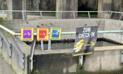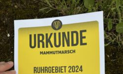 Ich stelle den roten Bus auf dem großen Parkplatz am Landschaftspark ab und übernachte hier, damit ich morgen früh nicht erst anreisen muss. Heute Nachmittag kann ich bereits einchecken und mein Startband für meine Startgruppe abholen. Ohne dieses Band, auf dem die Startgruppe steht, kann ich nicht zur gewählten Zeit loslaufen. Der Checkin geht sehr schnell und ich treffe schon einige Mammuts, die morgen mit mir loslaufen.