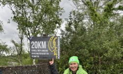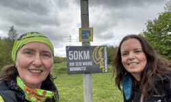 Bei Kilometer 45 befindet sich der letzte Verpflegungspunkt. Mein Regenponcho verschwindet im Ruxsack und ich hole die Crocs hervor, die ich auf den letzten Kilometern anziehe. Meine Fußsohlen schmerzen mittlerweile so stark, dass sich meine Füße über die weichen Sohlen sehr freuen. Und weitere 10 Kilometer sind ja vergleichsweise ein Klax. Wenn man nicht schon 45 Kilometer gelaufen wäre. Egal, es geht weiter auf die letzten Kilometer. Wir erwarten sehnsüchtig das 50 Kilometer-Schild, das endlich irgendwann an einem Straßenschild auftaucht. Nun bin ich noch einmal richtig motiviert, nur noch 5 kleine Kilometerchen.