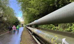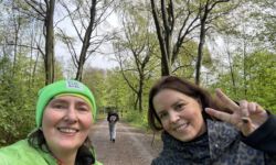 Drei Kilometer vorm Ziel kommt mir die restliche Strecke dann wieder unendlich lang vor. Sie zieht sich wie ein Kaugummi. Mit Julia an meiner Seite halte ich die Geschwindigkeit, auch wenn es schwer fällt. Dann sehen wir endlich den Landschaftspark. Leider müssen wir nun trotzdem noch einen Kilometer über das Gelände bis zum Ziel laufen. Auf einer Bank ziehen wir die Regenjacken aus, denn Julias Mutter wartet im Ziel und will ein Video von uns drehen. Und da müssen wir schließlich ordentlich aussehen.