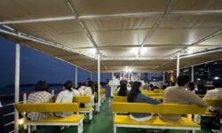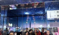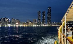Wir fahren mit dem Boot an der Skyline von Busan und an der Gwanban-Brücke entlang. Die Skyline wird bunt angestrahlt, was ziemlich kitschig aussieht. Dann geht es zurück und wir kommen an Booten vorbei, die ein Feuerwerk am Himmel entfachen. Das ist doch mal ein angemessener Empfang für uns. Nach der Bootstour fahren wir mit dem Bus zurück zum Hotel.