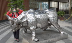 Sehr eindrücklich und mit Geräuschen untermalt erfahren wir wie das Rind im Buddhismus geehrt wird. Es ist wirklich witzig wie Taesub versucht, uns die Welt des Buddhismus näher zu bringen. Hinzukommt, dass er das R nicht sprechen kann und statt Rind eben Lind sagt, statt Reis eben Leis. Mönsch könnte Mönch oder Mensch bedeuten, da müssen wir schon genau zuhören, um die richtige Bedeutung zuordnen. zu können. Zu mir hat er beim ersten Treffen natürlich Flau Lux gesagt, das kannte ich schon von der chinesischen Austauschschule. Trotzdem hört es sich einfach witzig an und man muss aufpassen, nicht im falschen Moment zu lachen, denn er soll keinesfalls denken, dass wir ihn auslachen. Das tun wir nämlich nicht, denn er ist sehr engagiert, was sämtliche Organisationen angeht und ebenso bezüglich seiner Erklärungen. Nur seine Aussprache in Kombination mit Gestik, Mimik und Erklärgeräuschen ist eben oft sehr amüsant.