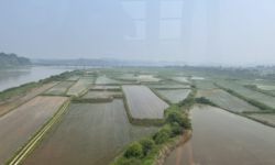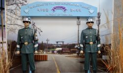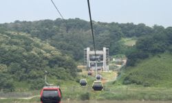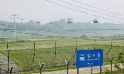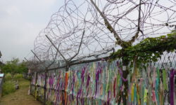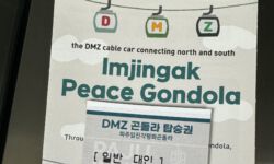 Dann fahre ich mit einer Gondel über den Fluss Imjingak und damit befinde ich mich bereits über der DMZ. Auf der anderen Seite gibt es ein Museum zum Koreakrieg, das ich besuche. Dann geht es mit der Gondel zurück über den Fluss und wir fahren mit dem Bus zur näxten Station, an der sich das neu gebaute Dora Observatorium befindet. Von hier aus habe ich einem guten Blick nach Nordkorea. Leider ist es wieder etwas diesig, so dass man nicht sehr viel sehen kann. Die aufgestellten Ferngläser lassen aber einen Blick auf die nordkoreanische Flagge zu, die auf nordkoreanischem Gebiet gehisst ist. Es sieht absurd aus, wie die Menschen durch die Ferngläser stieren. Es ist genauso wie zu DDR-Zeiten, als wir Westler in Berlin über solche Ausgucke nach Ostberlin reinsahen.