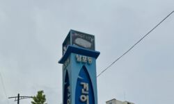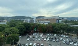 Wir ziehen weiter und fahren nach Gyeongju und checken im Hotel ein. Taesub macht den Vorschlag, dass wir uns in zwei Stunden treffen können und zusammen in die lokale Brauerei um die Ecke zum Abendessn gehen können. Ich finde die Idee gut, aber ich brauche keine zwei Stunden zum Ausruhen. Mein Navi sagt, dass ganz in der Nähe ein Turm steht, von dem aus man einen guten Blick auf Gyeongju hat. Daher laufe ich zu diesem Turm. Er steht auf dem ehemaligen Expogelände und ich fahre bis nach oben. Tatsächlich habe ich einen lohnenden Blick, aber leider sind alle Fensterscheiben total verschmiert. Naja, ich mache trotzdem ein paar Fotos bevor ich wieder zurück zum Hotel gehe.