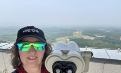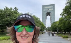 Noch vor dem Frühstück mache ich mich auf den Weg zum neuen, stylischen Rathaus. Von dort startet meine Tour zur DMZ, der demilitarisierten Zone, die sich zwischen Nordkorea und Südkorea befindet. Unser Guide SP im Bus erzählt uns während der einstündigen Fahrt wichtige Eckpunkte zur Entstehung der DMZ, zum Koreakrieg und zur momentanen Situation an der Grenze. Er stellt uns auch Nuri Pah vor, die uns auf der Fahrt begleitet und gerne unsere Fragen beantwortet.