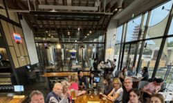 Um 18:30 Uhr stehen alle bereit. Wir gehen nur ein paar Minuten um die Ecke und sind in einer kleinen lokalen Brauerei gelandet. Hier bedienen uns Roboter, die Essen und Getränke liefern. Bestellt wird über ein Tablet. Klasse. Das Essen ist gut, das Bier schmeckt bis wir zusammen den Heimweg antreten.