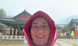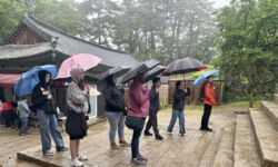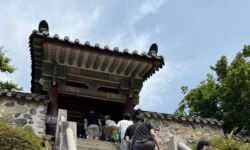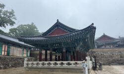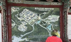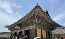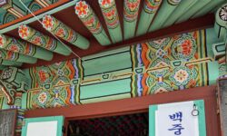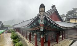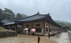 Zusammen gehen wir zum Tempel Haeinsa, den die UNESCO als Weltdokumentenerbe ausgezeichnet hat. Hier liegt die komplette Sammlung buddhistischer Schriften auf hölzernen Druckplatten. Diese Druckplatten sind aus dem 15. Jahrhundert und vollständig erhalten, weil das Haus mit einem ausgeklügelten Belüftungssystem versehen wurde, das Schimmelbildung verhindert. Taesub erklärt mit viel Leidenschaft wie die Druckplatten gelagert werden und widmet sich dann dem Rinderkult der Mönche.