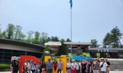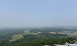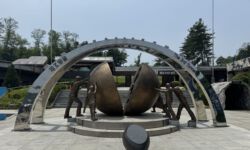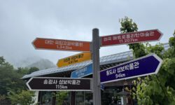 Anschließend fahren wir weiter zum 3. Angriffstunnel. Bisher wurden vier ehemals geheime Tunnel der Nordkoreaner unter der DMZ entdeckt, die zur Invasion von Nordkorea in den Süden genutzt werden könnten. Man vermutet noch bis zu 20 weitere Tunnel, die aber bisher nicht entdeckt wurden. Wir dürfen durch den Tunnel bis auf 1,20 Meter an Nordkorea heranlaufen. Der Tunnel ist auf südkoreanischer Seite etwa 1,6 Kilometer lang, es geht mächtig nach unten und In der zweiten Hälfte muss man sich bücken und einen Helm tragen. Fotos sind leider nicht erlaubt. Am Ende des Tunnels steht eine Zählmaschine, die angibt, seit wie vielen Tagen Nordkorea von Südkorea getrennt ist. Heute sind es bereits 25887 Tage, also über 70 Jahre. Nun geht es dieselbe Strecke zurück und ich bin wieder draußen.
