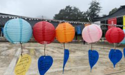 Der näxte Stopp ist am Bulguksa-Tempel. Das ist eine große Tempelanlage mit mehreren kleinen Tempel und vor den Tempeln befinden sich viele bunte Lampions, an denen Wunschzettel hängen. Auf diesen Zetteln stehen Wünsche für die Heiligen des Buddhismus. Sie werden regelmäßig rituell verbrannt und die Wünsche so in den Himmel getragen. Wir wünschen uns ein Mittagessen und unser Busfahrer bringt uns zu einem kleinen koreanischen Restaurant, indem wir viele Schälchen mit lauter unbekannten Speisen bekommen. Taesub erklärt uns, was es ist und wir probieren alles. Das meiste davon ist lecker. Und alles sieht definitiv klasse aus.