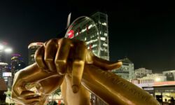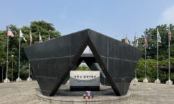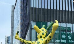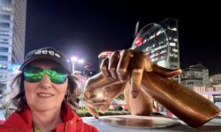 Der Lotte Sky World Tower ist mit 555 Metern das sechsthöchste Gebäude der Welt. Es geht rasend schnell im Fahrstuhl nach oben bis zur 123. Etage. Oben habe ich einen fantastischen Blick auf die dunkle Stadt. Es gibt auch ein Fenster nach unten, auf das man sich stellen kann, aber ich finde den Bereich recht klein geraten. Auf einer Terrasse kann man draußen stehen, aber eine Scheibe verhindert den freien Blick auf die Stadt ohne Spiegelungen. Ich laufe mehrmals rundherum, bevor ich den Turm verlasse. Dann gehe ich noch etwas unten am Turm entlang und fahre dann zum näxten Ziel: Die bekannte Gangnam-Statue. Sie symbolisiert das weltweite Aufstreben der K-Pop-Kultur durch den erfolgreichen Sänger PSY und dem Lied Gangnam-Style. Das Lied parodiert einen verschwenderischen und luxuriösen Lebensstil, den man mit dem Bezirk Gangnam in Seoul verbindet. Tatsächlich wird das Lied an der Statue über einen Lautsprecher abgespielt. Ich verlasse Gangnam und gehe ganz unstylisch ins Bett.