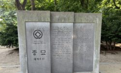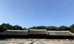 So gestàrkt laufen wir nun durch die Insadong-Kulturstraße mit vielen kleinen Läden. Hier werden wir frei gelassen. Zum Abend treffen wir uns noch einmal, um zuerst den Konfuzius-Schrein Jongmyoanzusehen und dann zusammen über den Kwangjang-Markt zu schlendern. Der Schrein wird gerade renoviert. Also erzählt uns Teasub alles über Konfuzius. Ich kann nicht mehr folgen, weil ich heute total müde bin, dazu ist es sehr sonnig und schwül. Aber er macht es wie immer gut mit Gesten und Geräuschen und Erklärbildern.