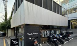 Dann trenne ich mich von der Gruppe, denn ich fahre mit der U-Bahn zu Deus Ex Machina, dem Flag Ship Store in Seoul. Der steht in einer schönen Gegend mit vielen Restaurants und Läden. Im Café lasse ich mich nieder und trinke einen Eiskakao. Der freundlichen Verkäuferin gefällt mein Koreatrikot und sie spendiert mir einen schönen Stempel von Deus auf ein Stǔck Papier.