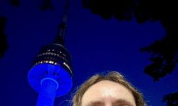 Am Abend treffe ich die Gruppe wieder, denn wir wollen gemeinsam auf den Fernsehturm N-Seoul-Tower, der 236 Meter hoch ist und ein bisschen wie der Dortmunder Florian aussieht. Leider ist es ziemlich diesig, so dass die Sicht nicht optimal ist, trotzdem gefällt mir die Aussicht auf die riesige Stadt. Dann fahren wir zurück zum Hotel. Die Leipziger, die Dortmunder und ich gehen in Hotelnähe noch auf ein Bier in eins der kleinen Restaurants. Wir lassen die Reise ein wenig Revue passieren und erzählen uns voneinander.
