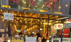 Nach dem Essen gehe ich zu der kleinen Küche und sage zur Chefin: „Machi sojo!“, was „Es ist lecker!“ bedeutet. Die Chefin freut sich sehr und lacht mir zu. Ich kann bis jetzt nur zwei Dinge auf Südkoreanisch sprechen, nämlich „Kamzahamnida“für „Danke“ und eben „Machi sojo“, aber damit kann man schnell Freude bereiten, denn die meisten Touristen sprechen gar kein Koreanisch.
