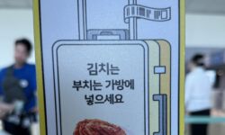 Am Flughafen wird darauf hingewiesen, Kimchi im Aufgabegepäck zu verstauen. Wer nimmt denn Kimchi mit nach Hause? Offenbar zu viele, noch dazu im Handgepäck. Verrückt.