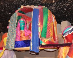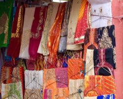 Rakesh fährt uns zum „Big Ben“ von Jodhpur und wir sehen uns das bunte Markttreiben drumherum an. Ich kaufe für umgerechnet 1,50€ einen Saree, der eigentlich 2,50€ kosten soll. Sicher habe ich noch nicht hart genug verhandelt, aber weniger wollte ich der Frau nicht geben. Der Saree ist ein wunderschönes ca. 5m langes Stofftuch, dass die Inderinnen sich gekonnt um den Körper wickeln, so dass es wie ein Kleid aussieht. Ich sehe mir ein YouTube-Video über die Wickeltechnik an und beschließe den Saree als Tischtuch o.ä. mit nach Hause zu nehmen.