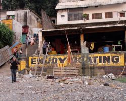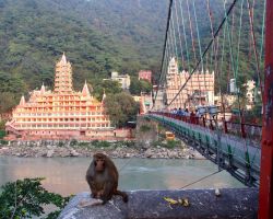 Der Ort ist trubelig mit vielen kleinen Läden und Restaurants und die Verkäufer nerven nur wenig. Es gibt zwei schmale Hängebrücken über den Ganges, die nur für Fußgänger sind, was nicht bedeutet, dass keine hupenden Mopeds drüberfahren.