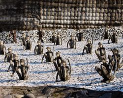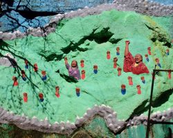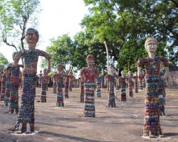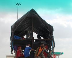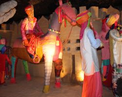 Unsere näxte Behausung ist eine kleine Hütte in der Wüste Thar in der Nähe von Jaisalmer. Auf der Fahrt dahin sehen wir noch mehr seltsame Fahrzeuge als bisher und jede Menge Pilger, die es immer im September zur Tempelanlage von Ramdevra, einem der heiligsten Orte in Indien, zieht. Schon viele Kilometer vor dem Ort sehen wir viele Schuhe am Straßenrand liegen, die die Pilger gemeinsam mit all ihren Problemen dort zurücklassen. Die Pilger laufen oder fahren mit Musik und bunten Fahnen mehrere Tage des Weges, um zu diesem Tempel zu gelangen.