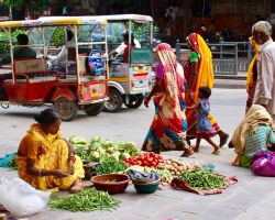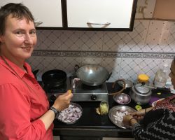 Beeindruckend waren die vielen bunten Sarees und Turbane, die schönen Tempel und Paläste, die unterschiedliche, teilweise bizarre Landschaft, die Tuktuks und Rikshas, die Märkte, die übervollen Fahrzeuge, die Kamele, Elefanten und Affen, die vielen Kühe, die bunten Häuser, das Treiben auf der Straße, die vielen Verkaufsstände und Buden mit den ordentlich aufgetürmten Waren, die Garküchen am Wegesrand und ab und an auch das indische Essen. Beim gemeinsamen Kochen mit Rakeshs Frau konnten wir lernen, wie die vielen unterschiedlichen Gewürze in die Töpfe kommen. Hier hat es uns richtig gut geschmeckt! Die oft nervigen Händler und Schlepper wurden später einfach links liegen gelassen oder müde belächelt, was nicht bedeutet, dass sie uns dann in Ruhe ließen. Aber es war einfach egaler geworden.