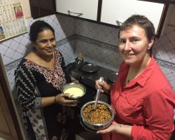 Rakesh hat uns nicht nur heile zurück nach Delhi gefahren, er hat uns auch noch mit zu sich nach Hause genommen und wir haben zusammen mit seiner Frau indisch gekocht und natürlich zusammen gegessen. Das war ein gelungener Abschluss unserer Rundreise durch Rajasthan und Nordindien.