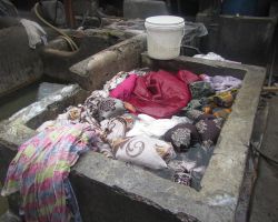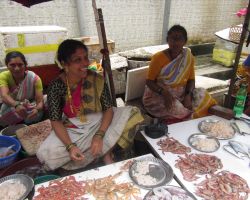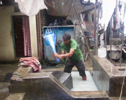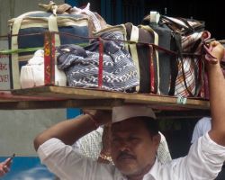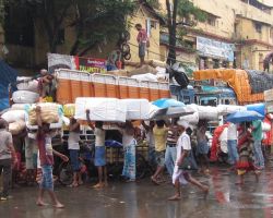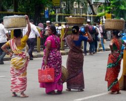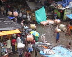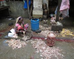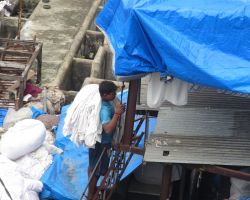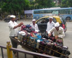 Am Bahnhof Churchgate sehen wir die Dabbawallah-Männer. Die bringen ca. 200.000 Henkelmänner täglich an die Arbeitsplätze in den umliegenden Büros. Mit einem ausgeklügelten Logistiksystem gelingt es trotz mehrerer Übergaben 99% der Essen korrekt auszuliefern. Am beeindruckendsten finden wir die Open Air Wäscherei Dhobi Ghat. Die Dhobis waschen Kleidung und Bettwäsche aus umliegenden Hotels und Krankenhäusern usw.. Diese Wäscherei ist gleichzeitig Heim für ca. 200 Familien, die dort hausen und deren Kinder ebenfalls Wäscher werden. Auch die Märkte sind oftmals gleichzeitig das Zuhause der Verkäufer. Im unteren Teil der Wellblechhütte wird verkauft, in der oberen „Etage“ wird geschlafen. Oder man legt sich einfach direkt neben Obst, Fleisch oder Fisch.