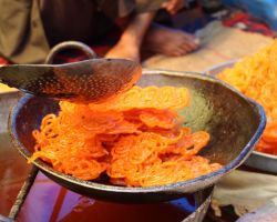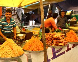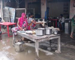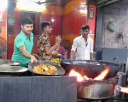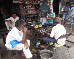 Im alten Zentrum leben zehntausende Menschen unter teilweise unfassbaren Verhältnissen auf der Strasse und versuchen sich mit Kleinverkäufen irgendwie über Wasser zu halten. Aber nicht nur die Ärmsten (das absurde, menschenunwürdige Kastensystem scheint noch nicht überwunden!!), sondern fast alle essen auf einfachen Holzkohleöfen zubereitete Speisen draußen im Straßengewusel. Vieles sieht sehr appetitlich aus und wird nett angerichtet serviert. Wenn man aber sieht, wie bzw. in welchem Wasser Gläser und Teller gespült werden, weiß man, wozu die Reiseapotheke nützlich werden kann.
