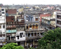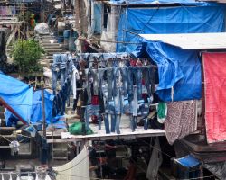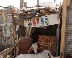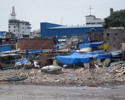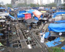 Bereits beim Anflug auf die Stadt können wir die Unterschiede zwischen afrikanischen Townships und indischen Slums sehen. Hier wird nicht nur ein oder zweigeschossig aufgestapelt sondern es gibt vielfach ganze Hochhaustürme aus Wellblech. Es sieht von oben so aus wie Kartenhäuser, die beim näxten kleinen Windstoß umfallen müssen.