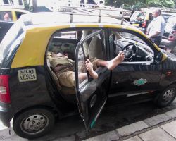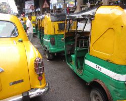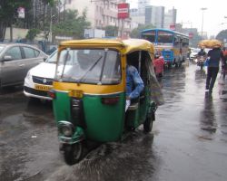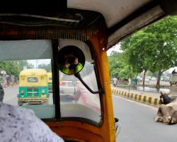 Die Taxifahrt vom Flughafen zum 20 km entfernten Hostel dauert 75 Minuten und das indische Leben rauscht an uns vorbei. Tuk-Tuks, Mopeds, Taxis, LKWs, Autos, Lastkarren und Fußgänger mitten auf der Fahrbahn. Jede Sekunde passieren lauter außergewöhnliche Dinge: Fußgänger springen auf die Fahrbahn, Mopeds kommen von allen Seiten, Kühe stehen irgendwo rum, es wird wie blöde gehupt, Ampel rot oder grün: Scheißegal! Das Motto heißt: Niemals stehen bleiben! Immer in Bewegung bleiben, die kleinste Lücke nutzen und ausweichen in die nächste. Es ist total verrückt. Zumindest gibt es keinen Stau. Man hat das Gefühl, dass sich das Taxi vorne zusammendrücken lässt, wenn es sich in die näxte Lücke quetscht. Irgendwie passt es immer, niemand berührt ein anderes Fahrzeug.