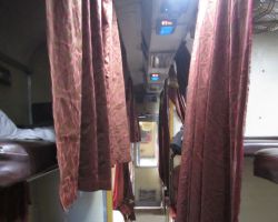 Dann kommt die Zugfahrt nach Agra. Der Zug kommt überpünktlich und fährt auch eher los, die Abfahrtszeit ist nur eine grobe Richtschnur. Wie gut, wenn man rechtzeitig da ist. Die Wagenstandanzeige gibt es nicht, wohl aber ab und an eine Lampe mit einem mutmaßlichen Waggonnamen. Unserer ist aber nicht dabei. Mein Zahlenstudium kommt jetzt sehr gelegen, denn mit ein bisschen Logik kombiniere ich, dass wir 120 Schritte von der letzten funktionierenden Anzeige B4 bis zu unserem Waggon A2 laufen müssen. Und: Waggon A2 hält genau vor unseren Füßen. Da staunt selbst der Ingenieur. 🙂