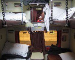 Der Zug ist sehr indisch. Wir sitzen mit einer netten Familie zusammen in einem Vierer-Schlafwagenabteil der 2. Klasse. Der Zug war schon die ganze Nacht durchgefahren und wir wecken die kleine Familie auf, weil wir feste Platznummern haben. Unterhalten können wir uns nicht richtig, da die Eltern kaum Englisch sprechen und das Kind noch zu klein ist. Aber ich bekomme etwas vom Mittagessen ab, dass die Frau von zu Hause mitgebracht hat. Das ist auch ohne Englisch lecker!