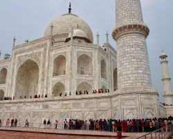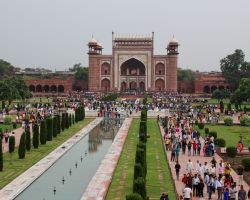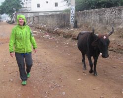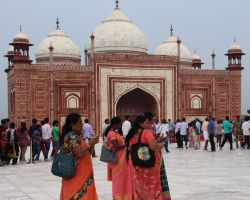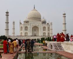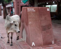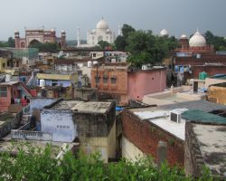 Wir gehen gleich zweimal ins Taj Mahal, am späten Nachmittag und am nächsten Morgen um halb sechs, bevor es voll wird. Das Gelände und die Gebäude beeindrucken uns wirklich, das ist mal etwas richtig Schönes in Indien! Auch das rote Fort in Agra gefällt uns. Einzig die Gegend rings herum ist mal wieder total abgerockt. Kinder und Kühe wechseln sich auf der Müllhalde direkt neben dem Osteingang ab. Von den kleinen Verkaufsbuden ist eine schmuddeliger als die andere und wir fragen uns, wo wir denn wohl etwas zu essen herkriegenden können ohne anschließend den Vorrat an Durchfalltabletten reduzieren zu müssen. Einen Supermarkt zur Selbstversorgung gibt es nicht und leider durften wir beim Aufstieg in unser Zimmer einen kurzen Blick in die renommierte Küche dieses Etablissements werfen.