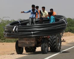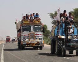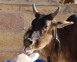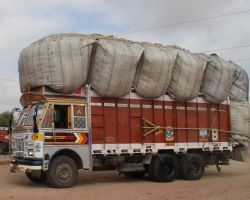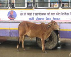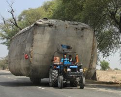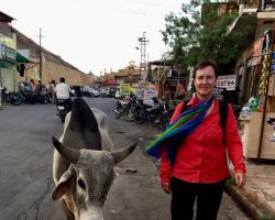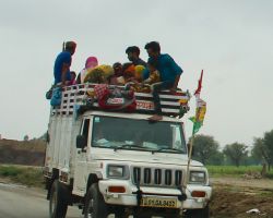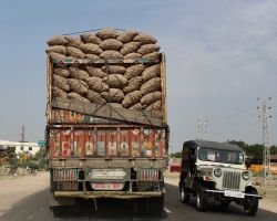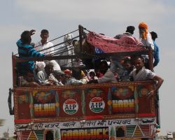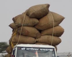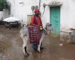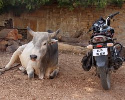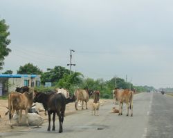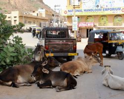 Auf der Fahrt nach Jodhpur sehen wir jede Menge völlig überladener Fahrzeuge. Mit Waren jeglicher Art oder auch Menschen. Außerdem haben wir noch nie so viele Kühe wie hier auf der Schnellstraße herumliegen sehen. Sie liegen da völlig unbekümmert und sehen sich die Fahrzeuge an, die um sie herumfahren. Wozu auf einer langweiligen Wiese grasen?