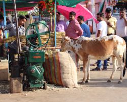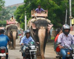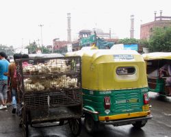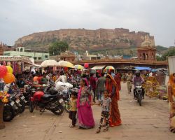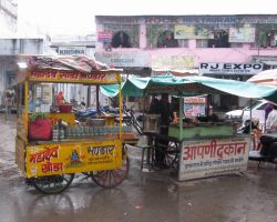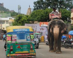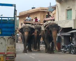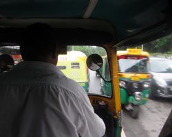 Dass wir gerne mal von A nach B laufen, kommt den Transportdienstleistern hier so gar nicht gelegen. Um eine Strecke von ca. einem Kilometer zu bewältigen, müssen wir mindestens fünfzehn Mal einen Riksha- oder Tuktukfahrer abwimmeln. Leider geben sich die Fahrer nicht mit einem einfachen „Nein!!!“ zufrieden, man muss schon sehr unfreundlich werden oder eine Zeit lang gar nicht antworten. Auf keinen Fall darf man den Fahrer ansehen, dann wird man ihn stundenlang nicht mehr los, weil er plötzlich an jeder Ecke wieder auftaucht, obwohl man zwischendurch in einem Fort, auf dem Klo oder sonstwo war. Hier wird man so, wie man nie sein wollte: Unfreundlich, ignorant und abweisend! Manchmal schließen wir Wetten ab, wie viele Fahrtangebote wir wohl auf dem nächsten Stückchen der Wegstrecke erhalten. Wir können es jetzt schon besser ertragen, weil tatsächlich ein kleiner Gewöhnungseffekt eingetreten ist. Indien beginnt uns zu gefallen. 🙂