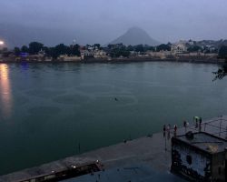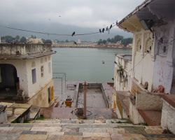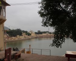 Pünktlich um neun geht es los nach Pushkar, das wir mittags erreichen. Als erstes checken wir im Hotel ein. Diesmal haben wir nicht nur eine funktionierende Dusche sondern tatsächlich auch ein Fenster mit einem schönen Blick auf die Berge.