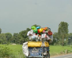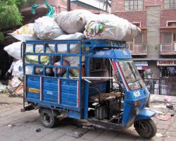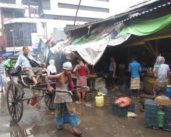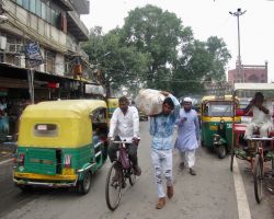 Der Verkehr ist ein einziges Chaos. Taxis, Tuktuks, Rikshas, völlig überladene LKW, uralte, überfüllte Busse, Lasten-Fahrräder, Menschen mit enormen Paketen auf dem Kopf quälen sich durch die engen Straßen, und wir mittendrin.