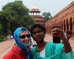 Hier laufen unheimlich viele Inderinnen herum, die fast alle einen bunten Saree tragen. Einige kommen mir sehr nahe, andere sprechen mich an, weil sie gerne mit mir zusammen auf ein Foto möchten. Da bin ich gerne dabei. Endlich erhält mein Kleidungsstil, für den ich im Lehrerzimmer nur Spott ernte, mal eine angemessene Wertschätzung. :))