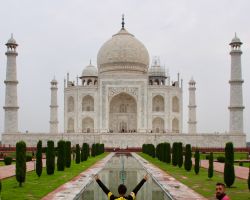 Unsere Bruchbude liegt direkt neben dem Osteingang des Taj Mahal und heißt Saniya Palace Hotel. Einen unfreundlicheren Empfang hatten wir bisher noch nicht. Einzig die Lage der Dachterasse ist genial, da man von da aus einen tollen Blick aufs Taj Mahal hat. Die dreckigen Schimmelbuden zwischen dieser ebenso tollen Unterkunft und der wunderschönen Grabstätte muss man auch nicht unbedingt ansehen.