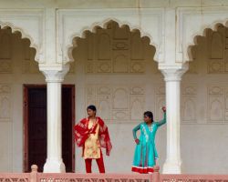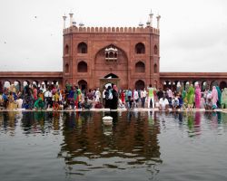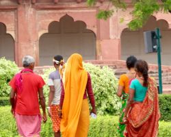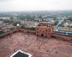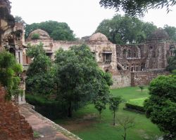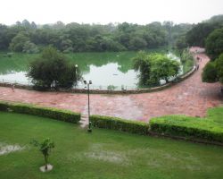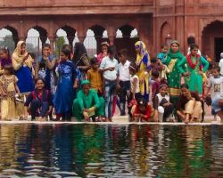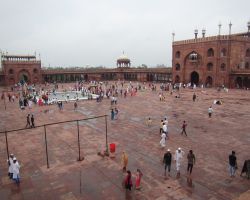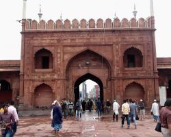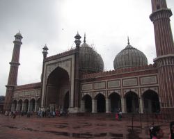 In den nächsten beiden Tagen sehen wir uns in Delhi um. Wir besichtigen die größte Moschee Indiens, die Jama Masjid. Klaus ist genervt, dass wir die Schuhe ausziehen müssen, erträgt es dann aber. Von der Spitze des Minaretts aus, sehen wir das Rote Fort und die ehemals schönen Gebäude von gegenüber. Den Hindutempel Jagannath in Hauz Khas besichtigt Klaus nur von außen. Schon wieder Schuhe ausziehen? „Nein, danke!“ Ich finde den Tempel klasse. In Hauz Khas gibt es noch ein Village mit einem Fort. Das liegt schön im Grünen an einem See. Unsere Laune steigt etwas, obwohl es viel regnet, solange wir nicht an unsere Unterkunft denken.