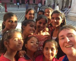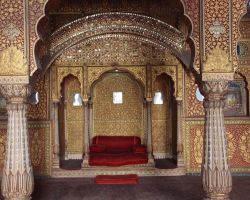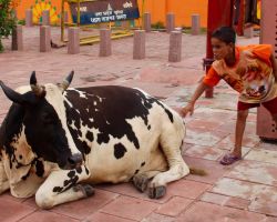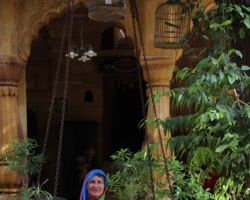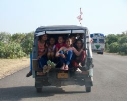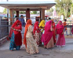 Auf der Fahrt nach Bikaner sehen wir wieder viele Fahrzeuge mit extremer Ladung. In Bikaner selbst sehen wir uns nur das Junagarh Fort an, denn ich möchte endlich zum Rattentempel in Deshnok! Mein Bruder hat mir schon oft von diesem besonderen Tempel erzählt. Er heißt Karni-Mata-Tempel und beherbergt tausende heilige Ratten, die von den Besuchern mit Leckereien gefüttert werden. Wer eine weiße Albinoratte sieht, so wie ich, der hat viel Glück, denn es gibt nur drei oder vier von ihnen. Jede Ratte soll eine Reinkarnation eines Mitgliedes des Karni Mata Volkes sein. Natürlich darf man auch diesen Tempel nur barfuß betreten und natürlich findet man hier eben eine andere Form der Tierhaltung. Die jungen Inderinnen, die mich im Tempel so freudig begrüßen und unbedingt auf ein Foto mit mir möchten, haben wir kurz vorher auf der Straße überholt. Sie saßen sicher mit mehr als einem Dutzend Mädchen in einem Tuktuk und hatten mir zugewinkt als ich sie fotografiert habe.