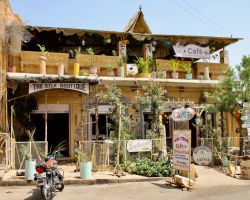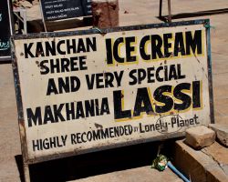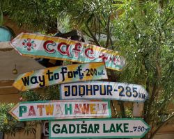 Pushkar ist nicht sonderlich groß und Rakesh fährt uns zuerst zum Sunset-Café. Das kommt mir sehr bekannt vor, denn mein Bruder Volker und meine Schwägerin Heidi waren dort vor 26 Jahren auch schon und ich hatte neulich noch den Indien-Bericht von Volker gelesen. Natürlich schicke ich erst einmal ein Foto vom Sunset-Café nach Hohen-Neuendorf und erhalte die Auflösung des Rätsels „Wo sind wir?“ prompt.